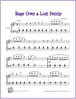 Today’s piece is Beethoven’s Rage Over a Lost Penny found in Piano Pronto Movement 4, Songs I Love to Play 2 and Beethoven: Exploring His Life and Music. The official title is The “Rondo alla ingharese quasi un capriccio” in G major, Op. 129 (Italian for “Rondo in the Hungarian [i.e. gypsy] style, almost a caprice”).